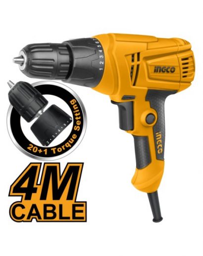 Voltage:220-240V~50/60Hz Input power:280W No-load speed:0-750rpm Max.drilling capacity:10mm 10mm keyless chuck 20+1 torque settings 4M cables Packed by color box